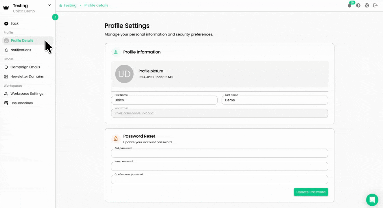 Ubico can sync categorized email response folders directly to your connected email account, so replies are automatically sorted into folders like Interested, Not Reached, or Other Conversations.