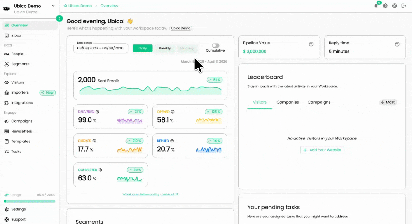 The Unified Inbox allows you to view all replies from prospects across all users in your workspace in real-time. By consolidating communications, it simplifies inbox management and enhances team collaboration, ensuring you never miss a follow-up.
